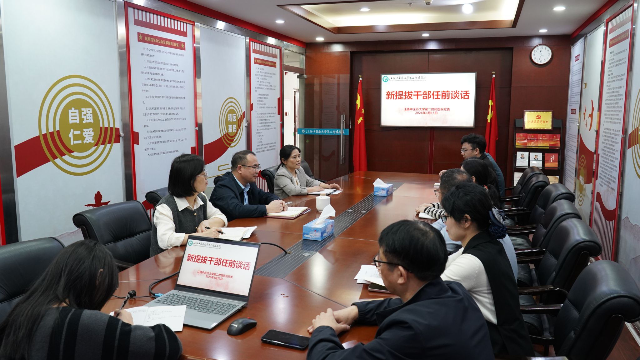 邓春生代表医院党委对新提拔干部表示祝贺。他指出,开展任前谈话既是干部任用的必要程序,也是组织对大家的关心和期望。围绕“德能勤绩廉”五个方面,邓春生对新任职干部提出明确要求: