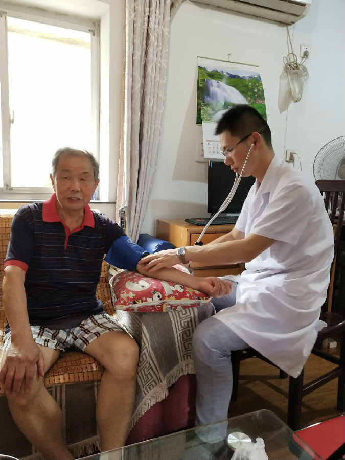 我院党员志愿者慰问老党员,了解老同志的身体情况及生活状态,为老同志做健康检查并送上保健用品、防暑降温食品